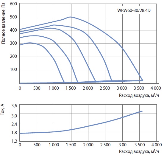 В вентиляторах типа WRW применяются асинхронные однофазные и трехфазные электродвигатели с внешним ротором. Применяемые электродвигатели позволяют достичь рабочего ресурса более 40 000 часов без профилактики. Вентилятор и рабочие колеса изготовлены из оцинкованного стального листа. Вентилятор типа WRW 100-50 имеет назад загнутые лопатки, остальные типоразмеры имеют вперед загнутые лопатки.