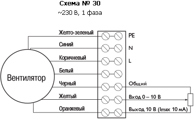 Регулирование скорости вентиляторов осуществляется в диапазоне от 0 до 100% с помощью встроенного потенциометра или внешним сигналом 0–10 В. Потенциометр установлен в клеммной коробке и при необходимости управления внешним регулятором встроенный потенциометр необходимо отключить.