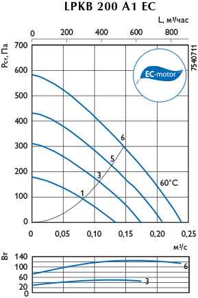 Канальные вентиляторы LPKB ЕС имеют типоразмеры от 100 до 315 мм и предназначены для соединения с воздуховодами круглого сечения. Степень защиты электродвигателя IP 44 или IP 54 (см. таблицу "Технические характеристики"), клеммной коробки – IP 54.
